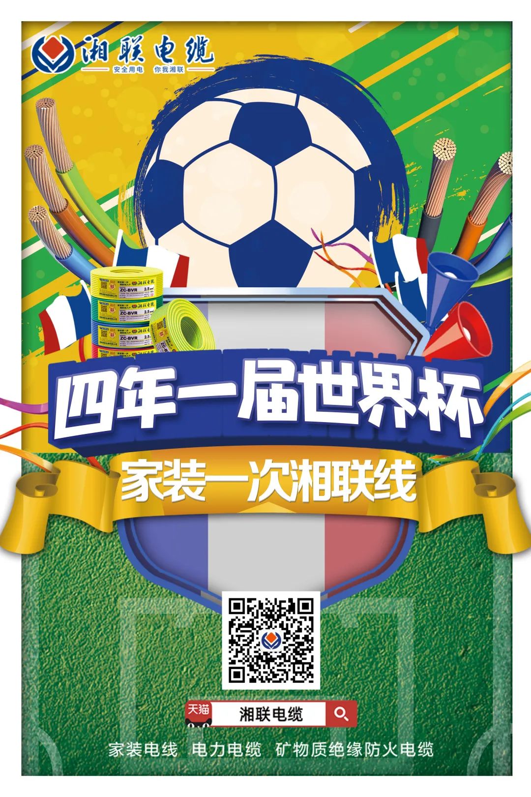 湘聯(lián)電纜產(chǎn)品不僅通過國(guó)家強(qiáng)制性產(chǎn)品(CCC認(rèn)證),而且符合ROHS指令,同時(shí),獲得“中國(guó)節(jié)能環(huán)保產(chǎn)品”等榮譽(yù),且由中國(guó)人保承保,不懼時(shí)間變化,不僅陪伴您本屆世界杯,還可以陪伴您每一屆世界杯。
